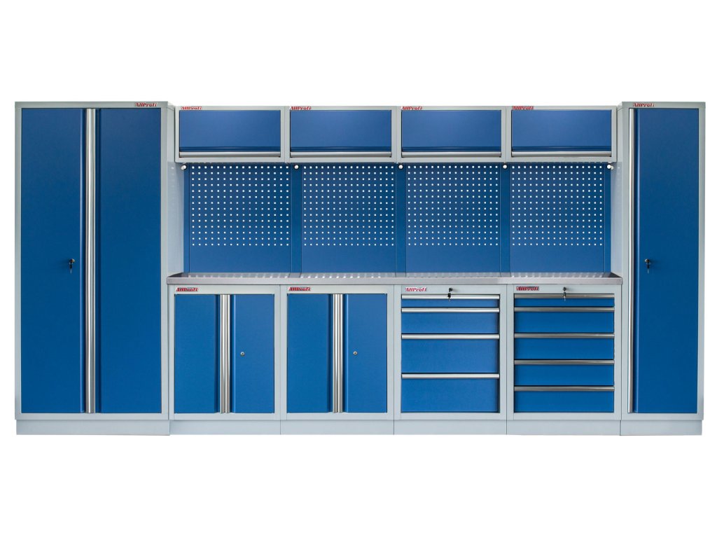 Dílenský nábytek PROFI BLUE je plně modulární. Každá skříňka je navržena s ohledem na maximální flexibilitu. Jednotlivé komponenty zaměníte a umístíte podle vašich potřeb. Bez problému tak přidáte další skříňky na jakoukoliv pozici nebo sestavu můžete rozšířit o regály, ponk, dílenské vozíky s nářadím i prázdné nebo multifunkční skříňky.