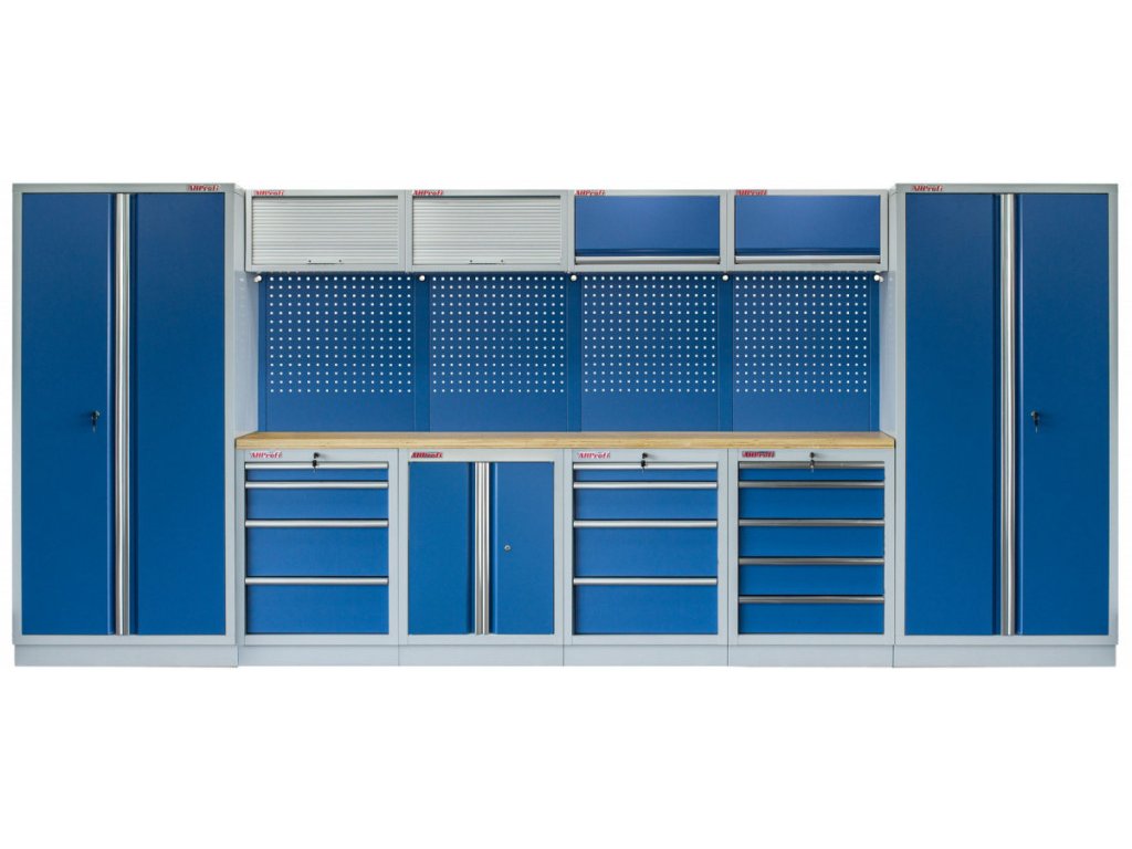 Sestava nábytku v sobě skrývá dostatečné množství úložného prostoru pro vaše nářadí, autotechniku i dílenské vybavení. V kombinaci s bytelnou pracovní deskou získáte multifunkční stěnu, se kterou vám půjde práce od ruky ve všech směrech.