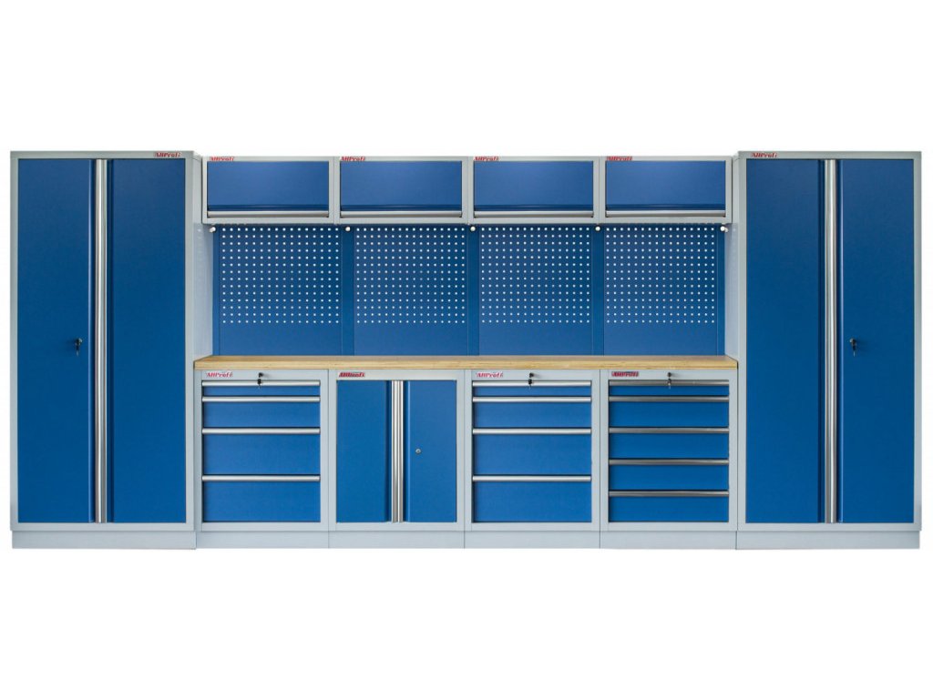 Sestava nábytku v sobě skrývá dostatečné množství úložného prostoru pro vaše nářadí, autotechniku i dílenské vybavení. V kombinaci s bytelnou pracovní deskou získáte multifunkční stěnu, se kterou vám půjde práce od ruky ve všech směrech.