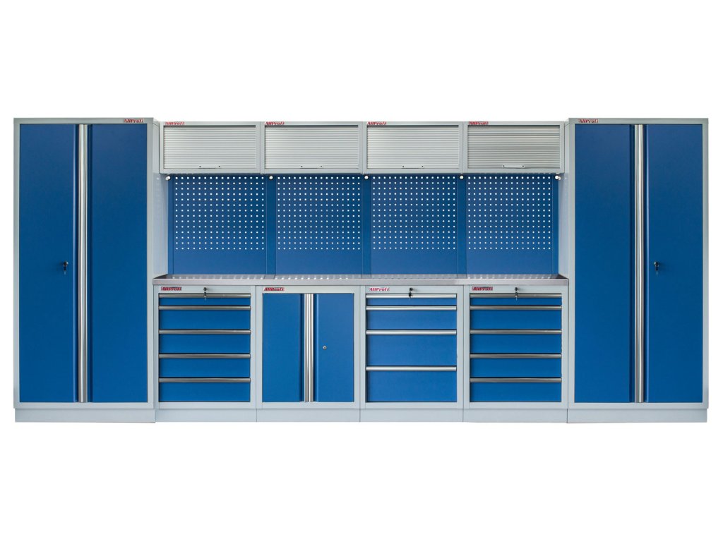 Sestava nábytku v sobě skrývá dostatečné množství úložného prostoru pro vaše nářadí, autotechniku i dílenské vybavení. V kombinaci s bytelnou pracovní deskou získáte multifunkční stěnu, se kterou vám půjde práce od ruky ve všech směrech.