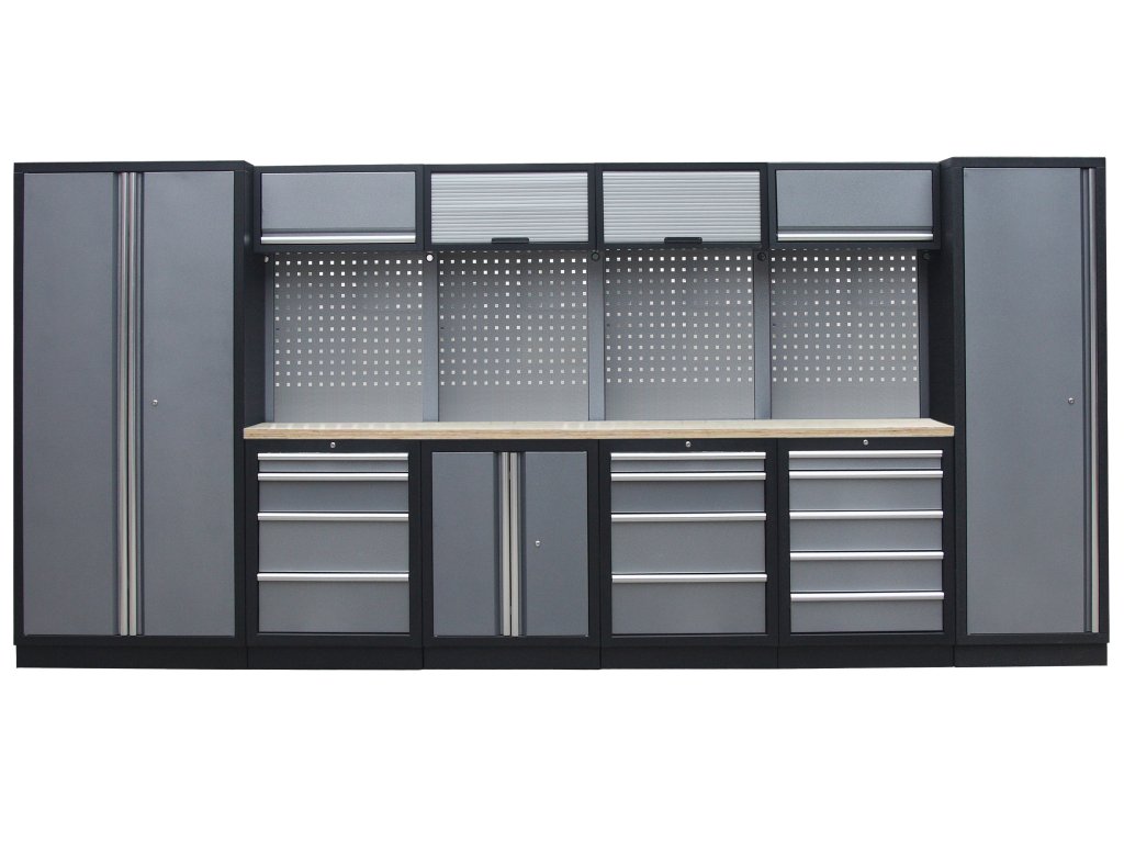 Sestava nábytku v sobě skrývá dostatečné množství úložného prostoru pro vaše nářadí, autotechniku i dílenské vybavení. V kombinaci s bytelnou pracovní deskou získáte multifunkční stěnu, se kterou vám půjde práce od ruky ve všech směrech.