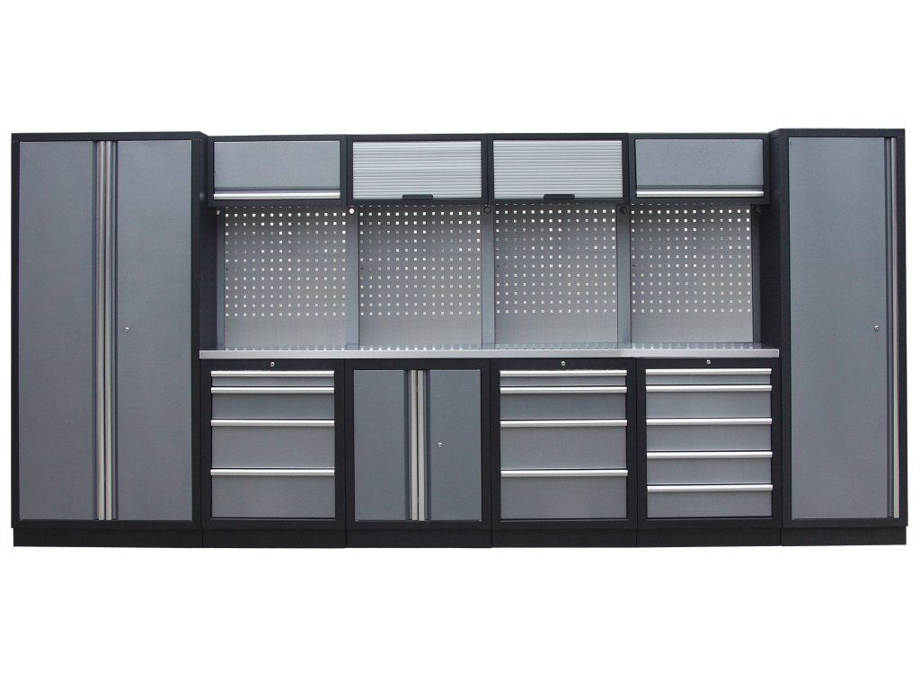 Sestava nábytku v sobě skrývá dostatečné množství úložného prostoru pro vaše nářadí, autotechniku i dílenské vybavení. V kombinaci s bytelnou pracovní deskou získáte multifunkční stěnu, se kterou vám půjde práce od ruky ve všech směrech.