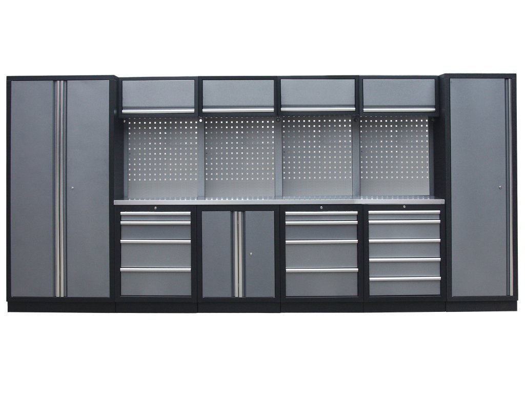 Sestava nábytku v sobě skrývá dostatečné množství úložného prostoru pro vaše nářadí, autotechniku i dílenské vybavení. V kombinaci s bytelnou pracovní deskou získáte multifunkční stěnu, se kterou vám půjde práce od ruky ve všech směrech.