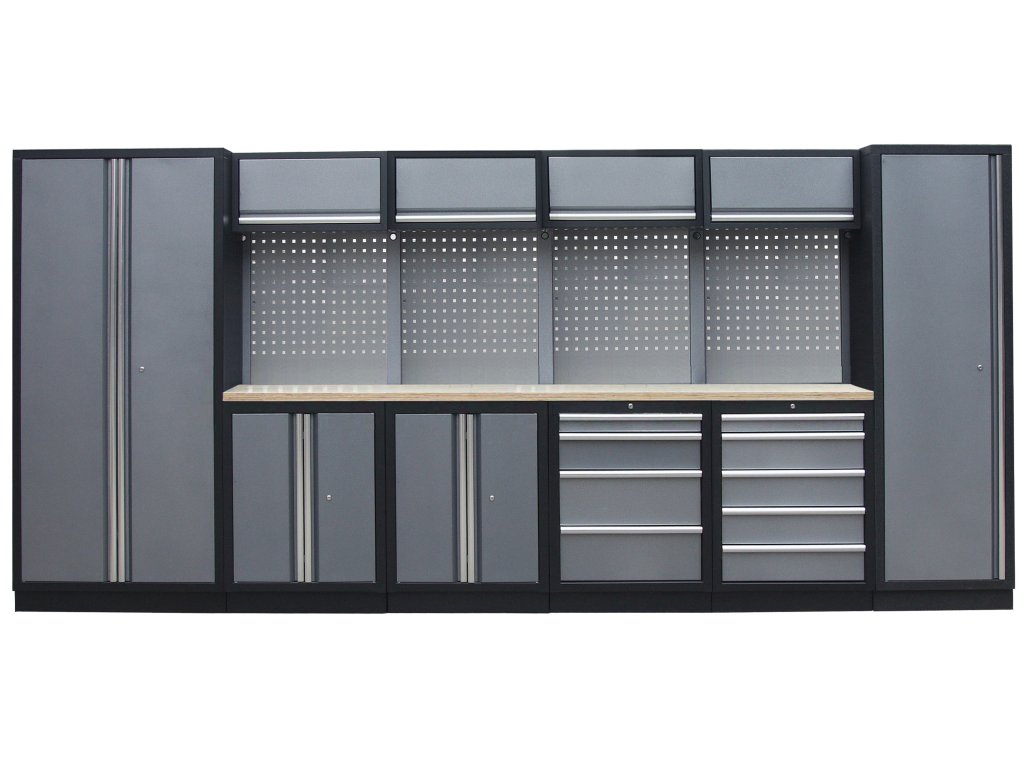 Sestava nábytku v sobě skrývá dostatečné množství úložného prostoru pro vaše nářadí, autotechniku i dílenské vybavení. V kombinaci s bytelnou pracovní deskou získáte multifunkční stěnu, se kterou vám půjde práce od ruky ve všech směrech.