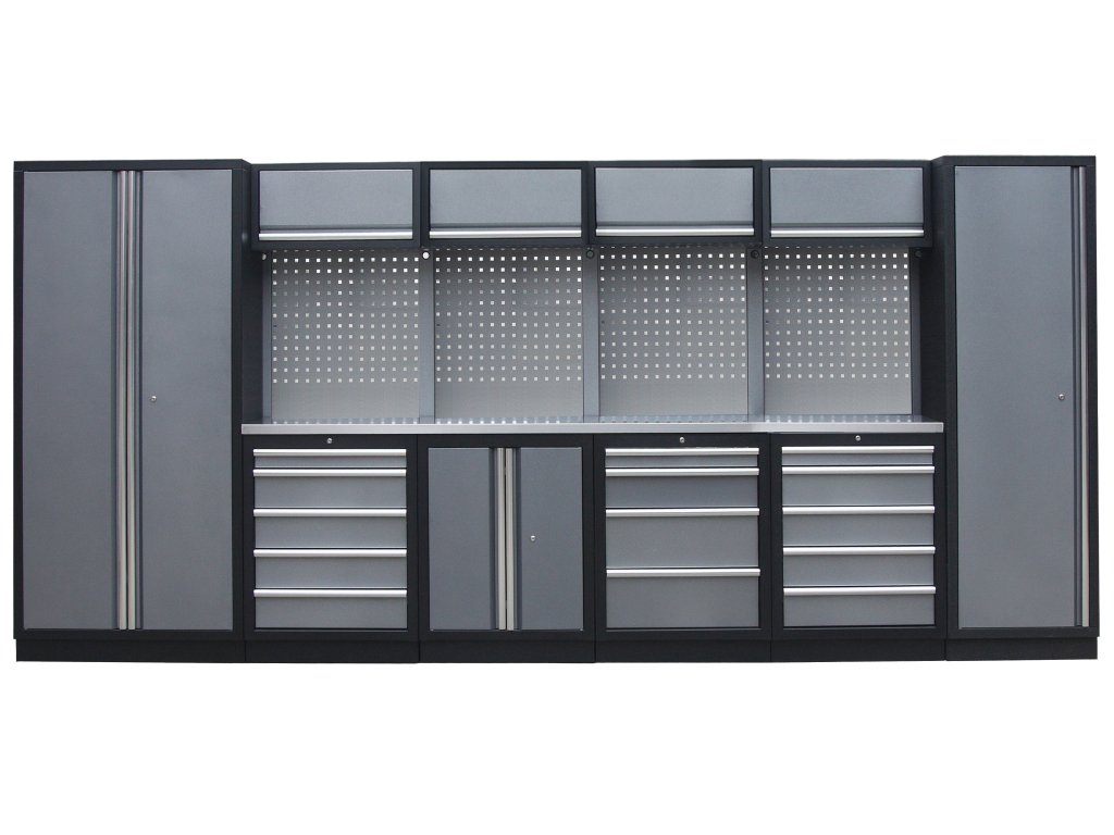 Sestava nábytku v sobě skrývá dostatečné množství úložného prostoru pro vaše nářadí, autotechniku i dílenské vybavení. V kombinaci s bytelnou pracovní deskou získáte multifunkční stěnu, se kterou vám půjde práce od ruky ve všech směrech.