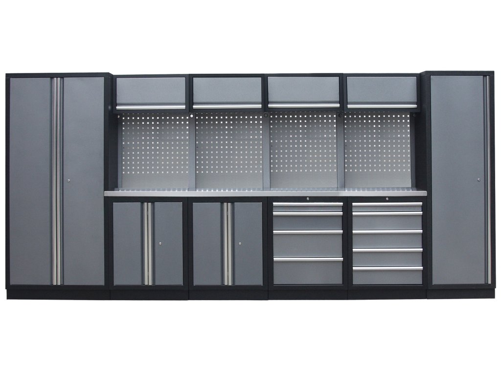 Sestava nábytku v sobě skrývá dostatečné množství úložného prostoru pro vaše nářadí, autotechniku i dílenské vybavení. V kombinaci s bytelnou pracovní deskou získáte multifunkční stěnu, se kterou vám půjde práce od ruky ve všech směrech.