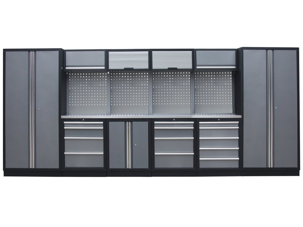 Sestava nábytku v sobě skrývá dostatečné množství úložného prostoru pro vaše nářadí, autotechniku i dílenské vybavení. V kombinaci s bytelnou pracovní deskou získáte multifunkční stěnu, se kterou vám půjde práce od ruky ve všech směrech.