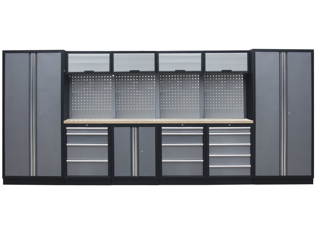 Sestava nábytku v sobě skrývá dostatečné množství úložného prostoru pro vaše nářadí, autotechniku i dílenské vybavení. V kombinaci s bytelnou pracovní deskou získáte multifunkční stěnu, se kterou vám půjde práce od ruky ve všech směrech.