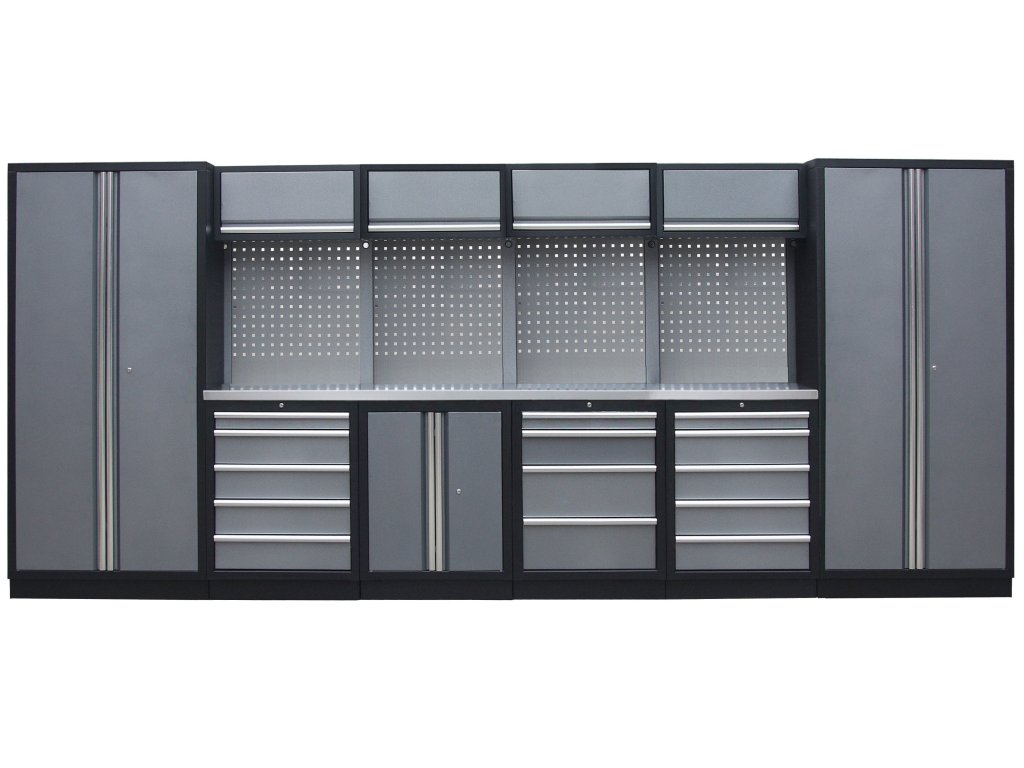 Sestava nábytku v sobě skrývá dostatečné množství úložného prostoru pro vaše nářadí, autotechniku i dílenské vybavení. V kombinaci s bytelnou pracovní deskou získáte multifunkční stěnu, se kterou vám půjde práce od ruky ve všech směrech.