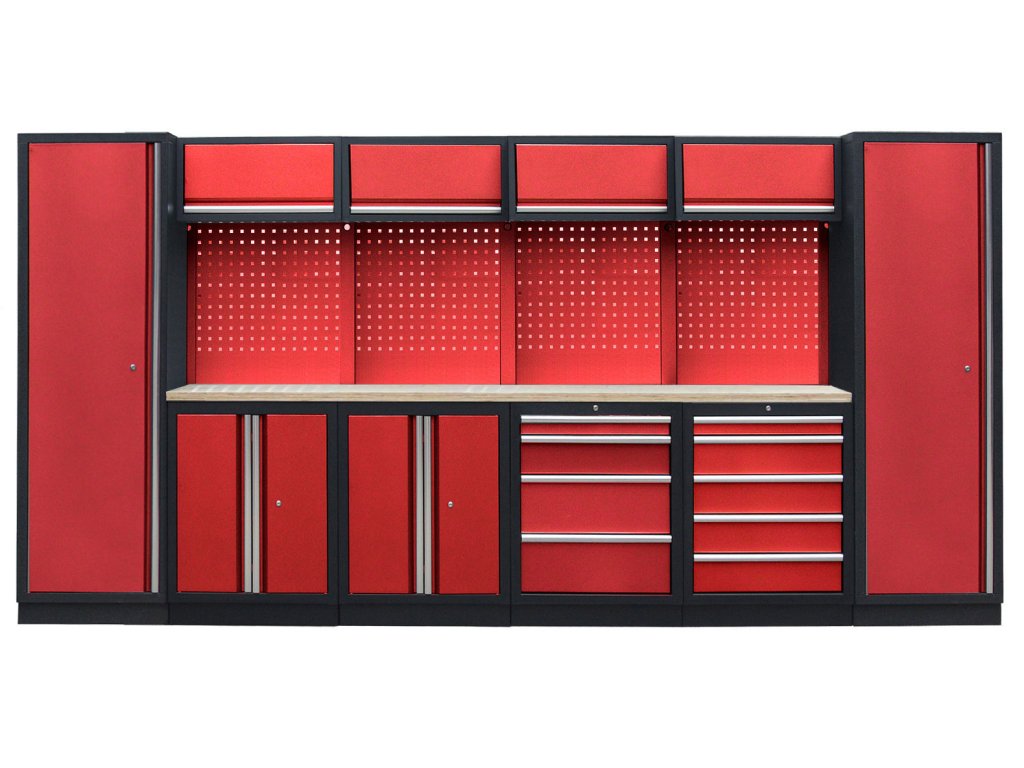 Sestava nábytku v sobě skrývá dostatečné množství úložného prostoru pro vaše nářadí, autotechniku i dílenské vybavení. V kombinaci s bytelnou pracovní deskou získáte multifunkční stěnu, se kterou vám půjde práce od ruky ve všech směrech.