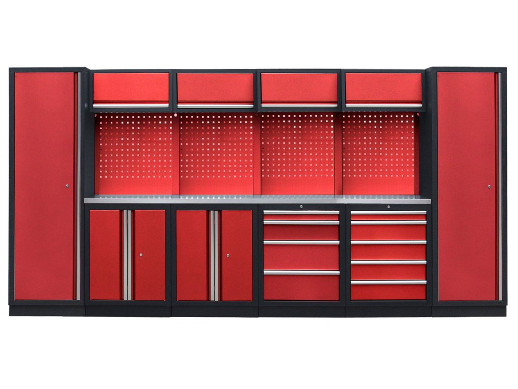 Sestava nábytku v sobě skrývá dostatečné množství úložného prostoru pro vaše nářadí, autotechniku i dílenské vybavení. V kombinaci s bytelnou pracovní deskou získáte multifunkční stěnu, se kterou vám půjde práce od ruky ve všech směrech.