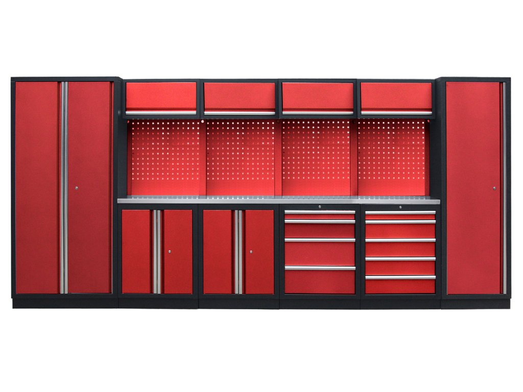 Dílenský nábytek PROFI RED je plně modulární. Každá skříňka je navržena s ohledem na maximální flexibilitu. Jednotlivé komponenty zaměníte a umístíte podle vašich potřeb. Bez problému tak přidáte další skříňky na jakoukoliv pozici nebo sestavu můžete rozšířit o regály, ponk, dílenské vozíky s nářadím i prázdné nebo multifunkční skříňky.