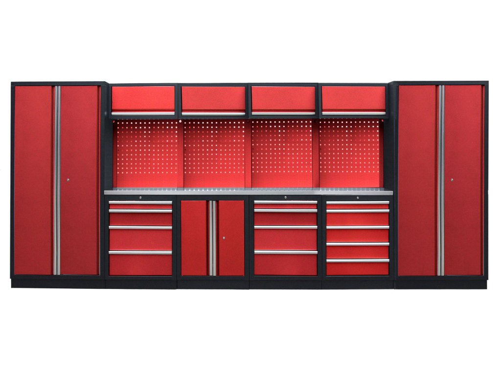 Sestava nábytku v sobě skrývá dostatečné množství úložného prostoru pro vaše nářadí, autotechniku i dílenské vybavení. V kombinaci s bytelnou pracovní deskou získáte multifunkční stěnu, se kterou vám půjde práce od ruky ve všech směrech.