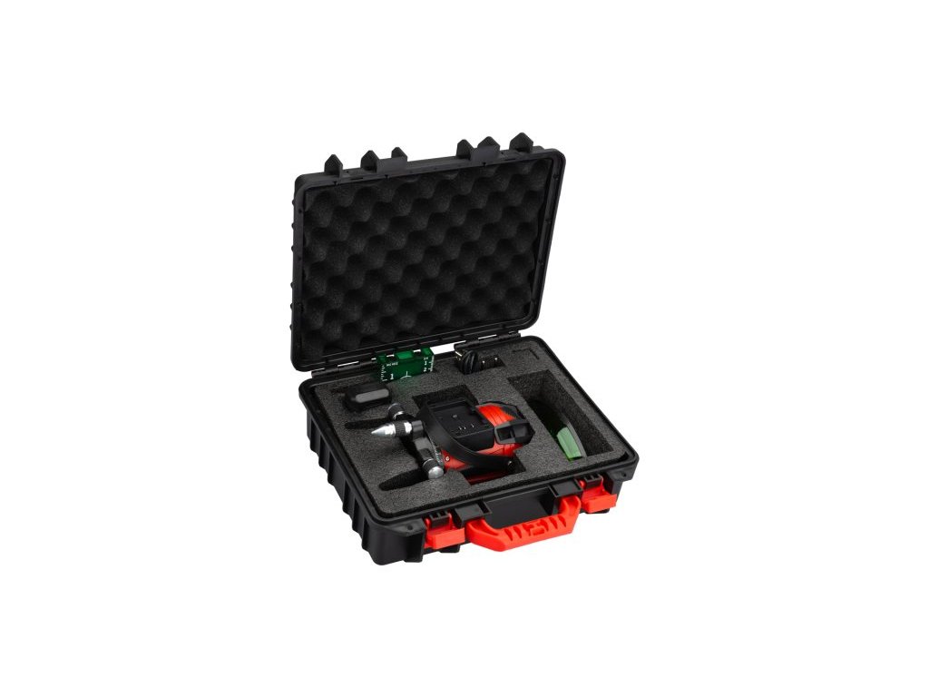 - obsah balení : přepravní kufr, Li-ion baterie 2600 mAh, nabíječka, otočný ministativ v rozsahu 360°, cílová destička mm / inch, brýle
