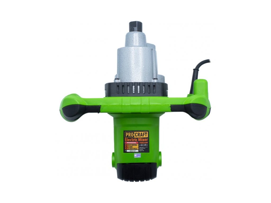 Elektrické míchadlo Procraft PMM2600 je určeno k míchání betonu, malty, lepidla, omítky, sádry. Dvourychlostní převodovka umožňuje nastavení optimálních rychlosti při míchání stavebních hmot. První pro viskózní a tuhé materiály, druhý pro řidší materiály. Silný motor s výkonem 1600 W a vysokých otáček až 900 zaručuje dlouhou bezporuchovou práci. Součástí dodávky jsou uhlíkové kartáče a maticový klíč. Balení karton.