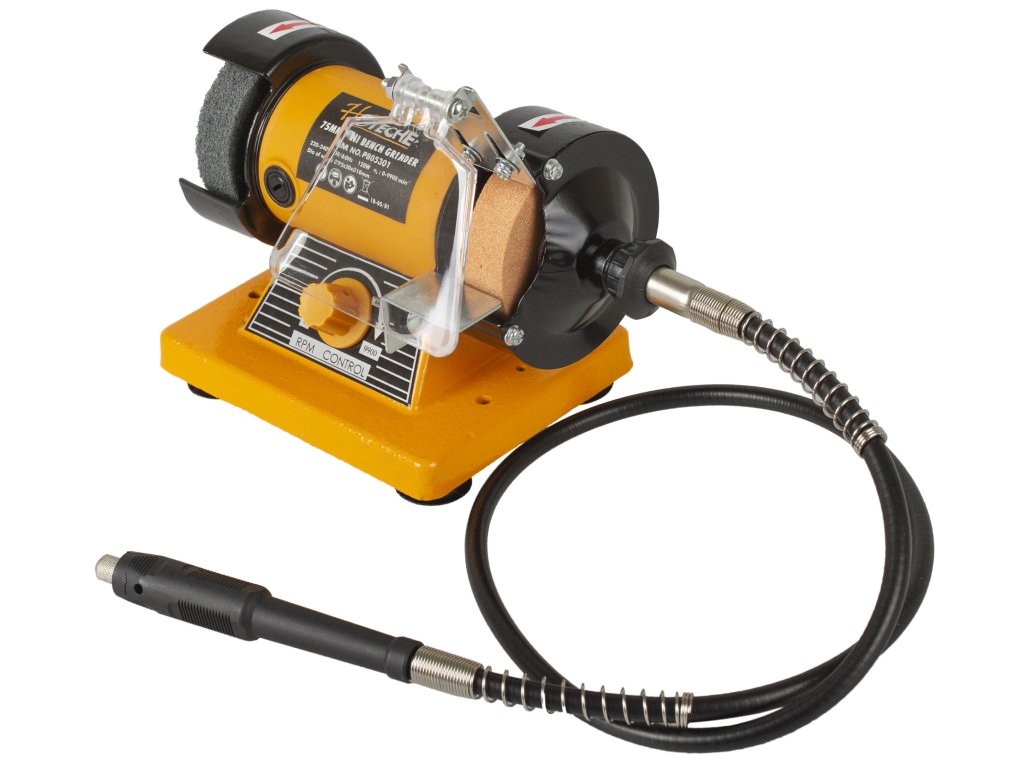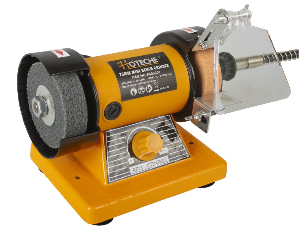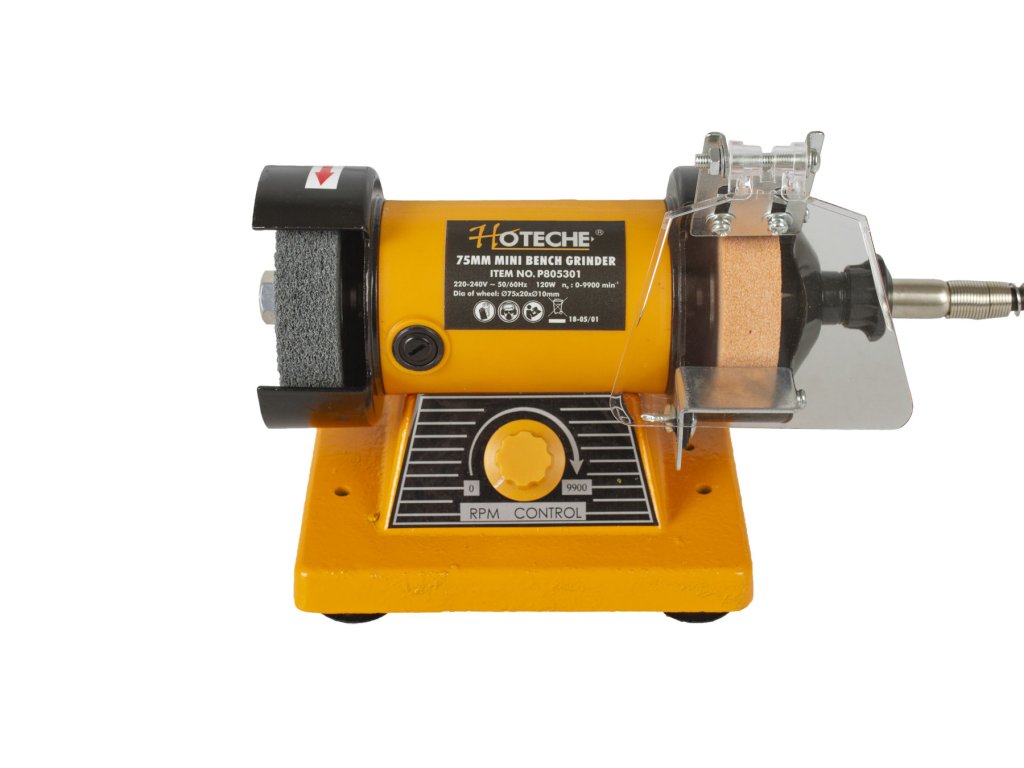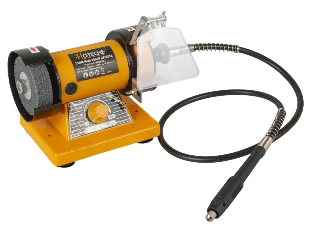 Dvoukotoučová stolní mini bruska od značky Hoteche je ideální kombinovaný nástroj k leštění nebo broušení různých materiálů.