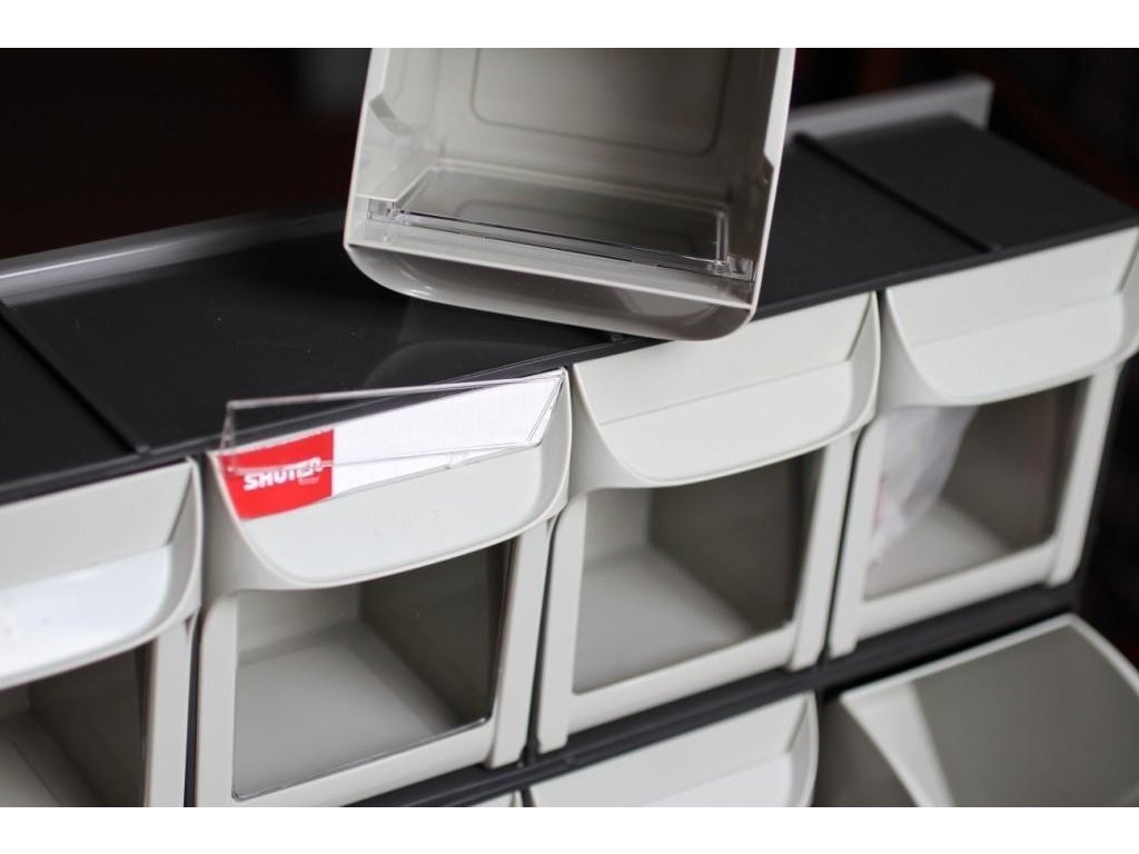 - Průhledné výklopné boxy zajišťují rychlou orientaci v obsahu.