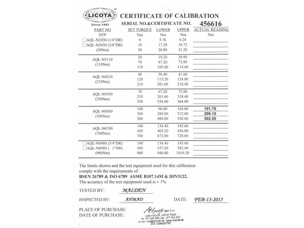 Tento klíč je navržen pro přesné utahování, a díky certifikátu o kalibraci je zajištěna jeho vysoká spolehlivost a přesnost.