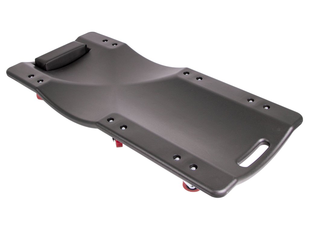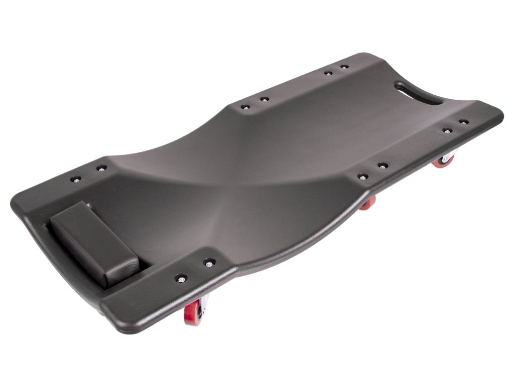 Pohodlí zajišťuje ergonomický tvar lehátka a měkký polštářek pod hlavu. Bezproblémový pohyb pod vozidlem díky šesti otočným kolečkům.