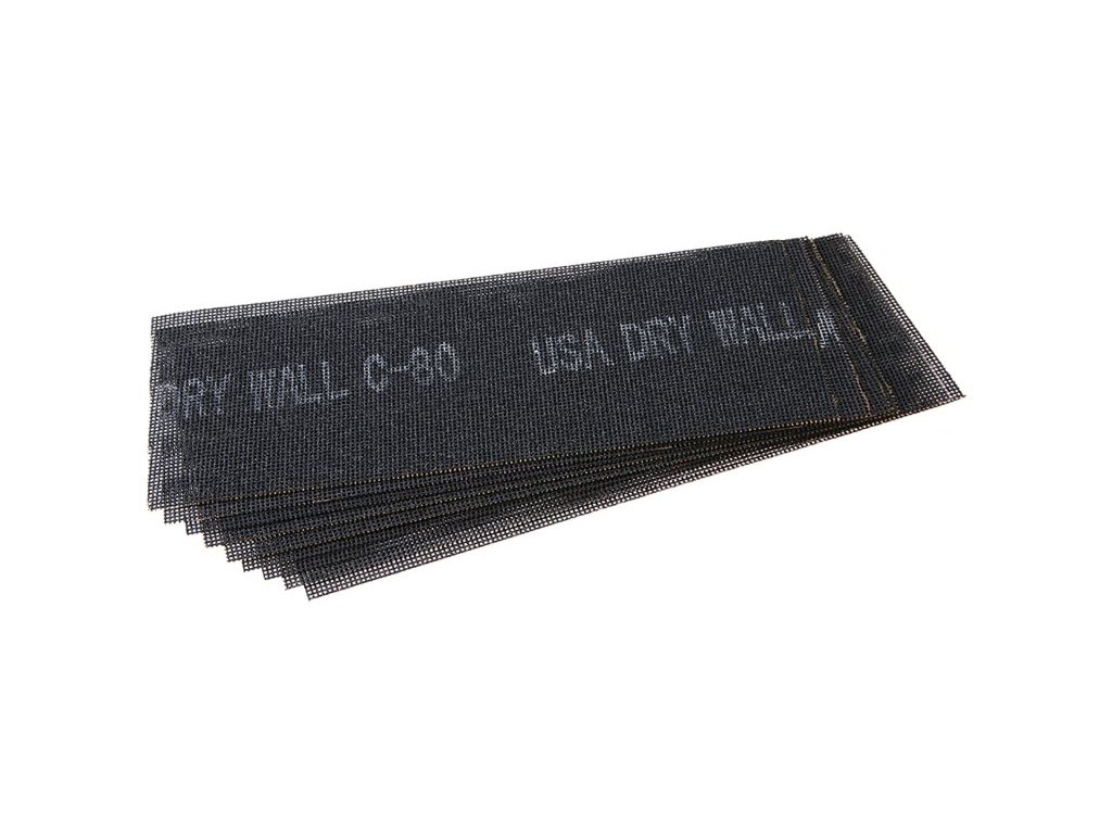 Brusná mřížka 115 x 290 mm, zrnitost 80, 10ks/sada. , nosná tkanina ze skelných vláken, pryskyřicí přilepena brousicí zrna karbidu křemíku nanšena antistaticky, vhodné pro broušení sadrokartonových spárovacích hmot, i dalších materiálů, výhoda mřížkové struktury proti běžným brousicím papírům spočívá v tom, že se nezanáší odbroušeným materiálem.Doplňkové parametry