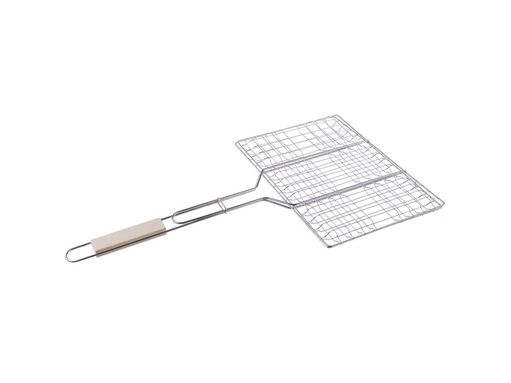 Grilovací mřížka otočná, použití : je ideální na grilování masa, zeleniny a jiných grilovaných specialit, grilovací mřížka díky konstrukci dvou mřížek mezi které vložime grilovaný pokrm - uzavřeme, zajistime pojistkou a umístíme na gril - rošt a snadno najednou i více porcí otáčíme a tím snadno docílíme správné urovně tepelné přípravy pokrmu.Doplňkové parametry