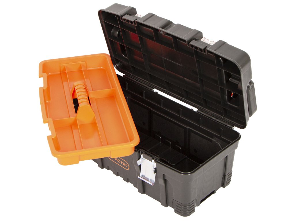 Vrchní box je odnímatelný pomocí bočních západek a vybaven organizérem na drobnější materiál (šrouby apod.), vrchní box lze lehce vyjmout.