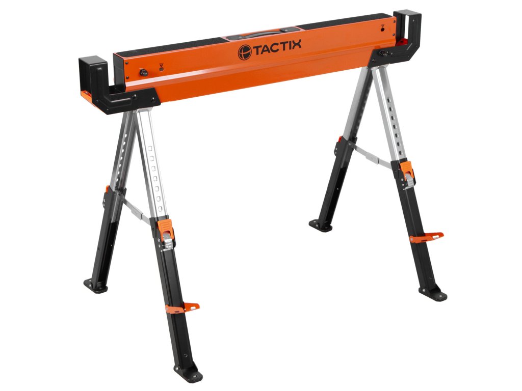 Robustní, všestranná a multifunkční pracovní koza Tactix, je odolná stavební podpěra vybavena mechanismem jednoduchého otevírání pro rychlé a snadné nastavení s nosností až 590 kg.