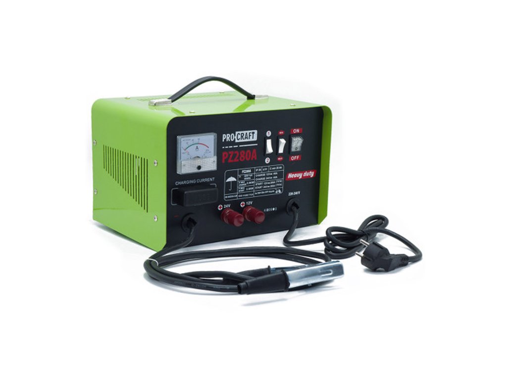 Procraft PZ280A je výkonná nabíječka autobaterií kombinovaná se startovacím zdrojem, která je ideální pro osobní i nákladní automobily, motocykly, dodávky a další vozidla. Díky vysokému nabíjecímu proudu až 20 A a startovacímu proudu 280 A zvládne spolehlivě dobíjet a nastartovat i velké motory.