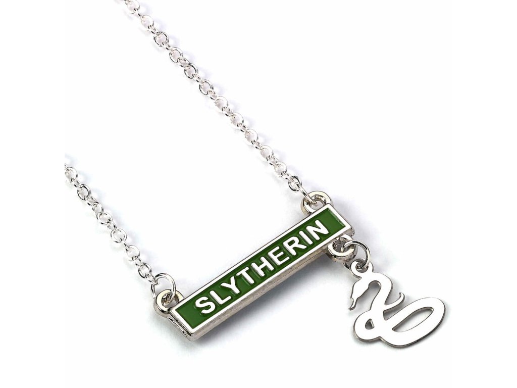 Krásný kovový náhrdelník s hadím symbolem Zmijozelu a názvem koleje bude skvělým dárkem pro malé i velké mágy z Bradavic a milovníky světa Harry Pottera! Řetízek je dlouhý 40 cm, s možností nastavit o dalších 5 cm.Doplňkové parametry