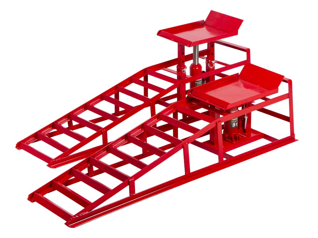Kovové nájezdové rampy jsou určeny pro osobní a menší dodávkové vozy a slouží ke snadnému servisu či opravám podvozkových částí vozidel. Díky integrované hydraulice umožňují bezpečné zvednutí vozidla bez nutnosti použití samostatného heveru.