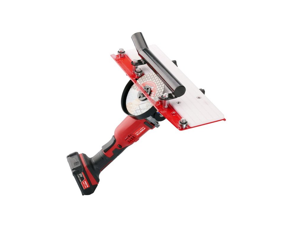 - nástavec - "SLIDER" na úhlovou brusku pro řezání dlažby nebo obkladů pod úhlem 45 st. na tzv. kamenické rohy