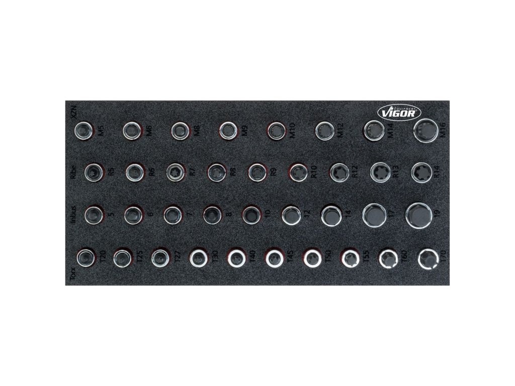 Nástrčné hlavice s bity v pěnové výplni, 1/2", 36 ks, VIGOR - V5099