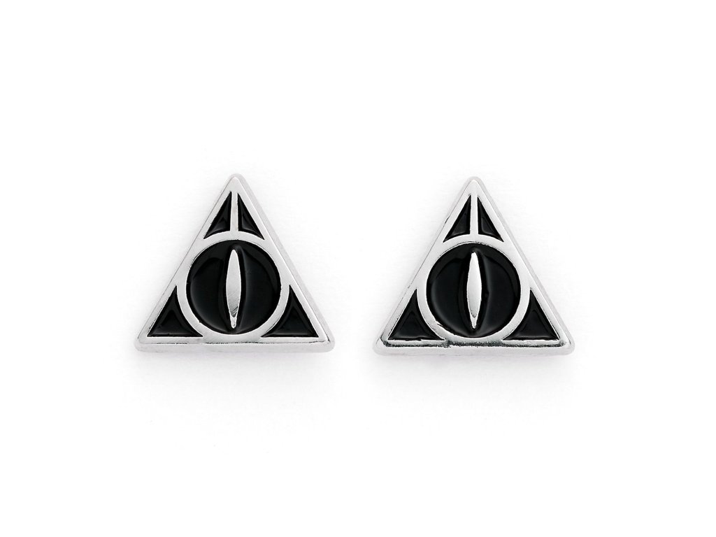 Hezké knoflíčkové náušnice v podobě symbolu Relikvie smrti z knih a filmů o Harry Potterovi z Bradavic potěší fanynky čarodějných příběhů J. K. Rowlingové. Sada obsahuje 1 pár náušnic.Doplňkové parametry
