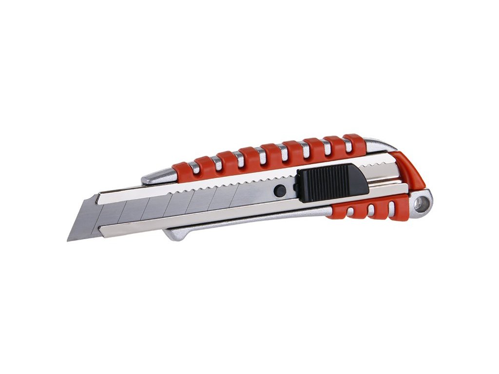 Odlamovací nůž FESTA 18mm, kvalitní materiály, celokovové tělo nože, protiskluzné plastové výstupky, kovová lišta, automatická posuvná aretace, do nože lze umístit až 2 náhradní břity, blistr.Doplňkové parametry