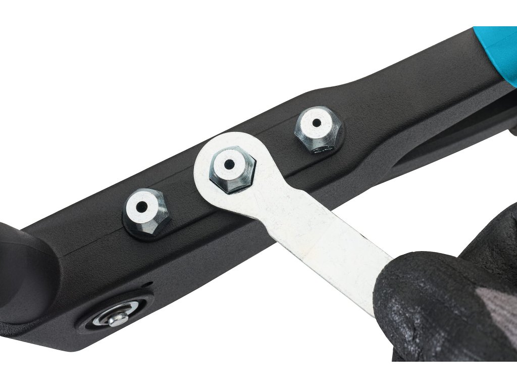 Kleště jsou vhodné pro ocelové slepé nýty o průměru 4 mm, hliníkové o průměru 5 mm a nerezové o průměru 3,2 mm.