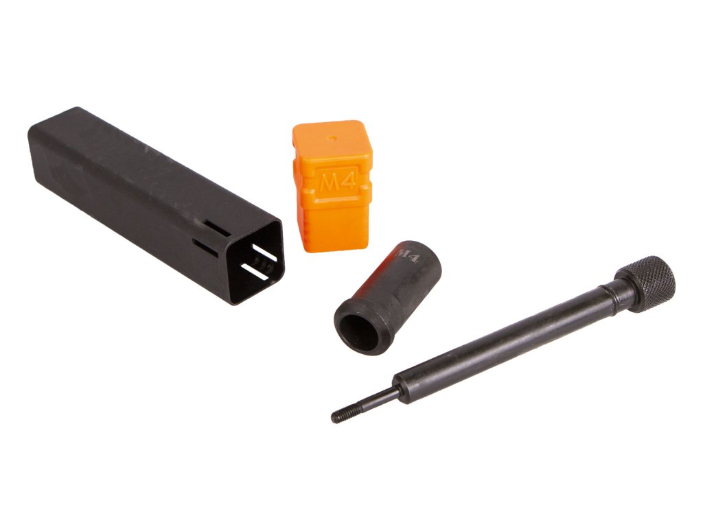 Všechny výměnné hroty, klíč na výměnu i jednotlivé nýty a matice jsou uloženy v plastovém kufříku a každá součást má přesně své místo.