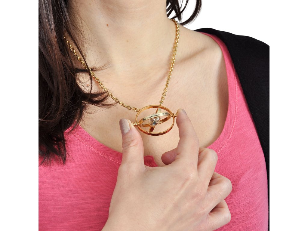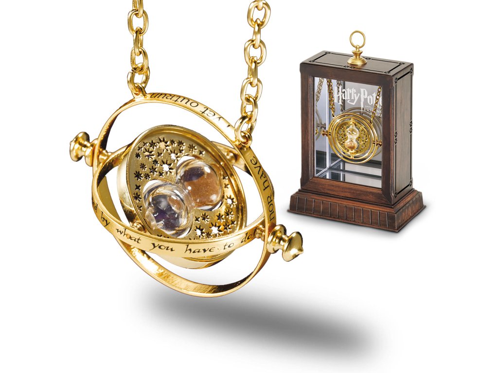 Autentická replika obraceče času z filmu Harry Potter a vězeň z Azkabanu. Jedná se o nástroj, kterým se lze vracet v čase. S jeho pomocí zvládala Hermiona Grangerová svůj přeplněný rozvrh a právě on pomohl zachránit hrdinům příběhu nejeden život. Jednotlivé prstence jsou otočné, uprostřed jsou miniaturní přesýpací hodiny. Průměr obraceče je cca 3,5 cm, je opatřen řetízkem (délka 45 cm). Je pozlacený 24 karátovým zlatem. Součástí je ozdobná krabička se zrcátkem. Jedná se o filmovou dekorační repliku, pro běžné nošení není vhodná a může se opotřebit či zoxidovat.Doplňkové parametry