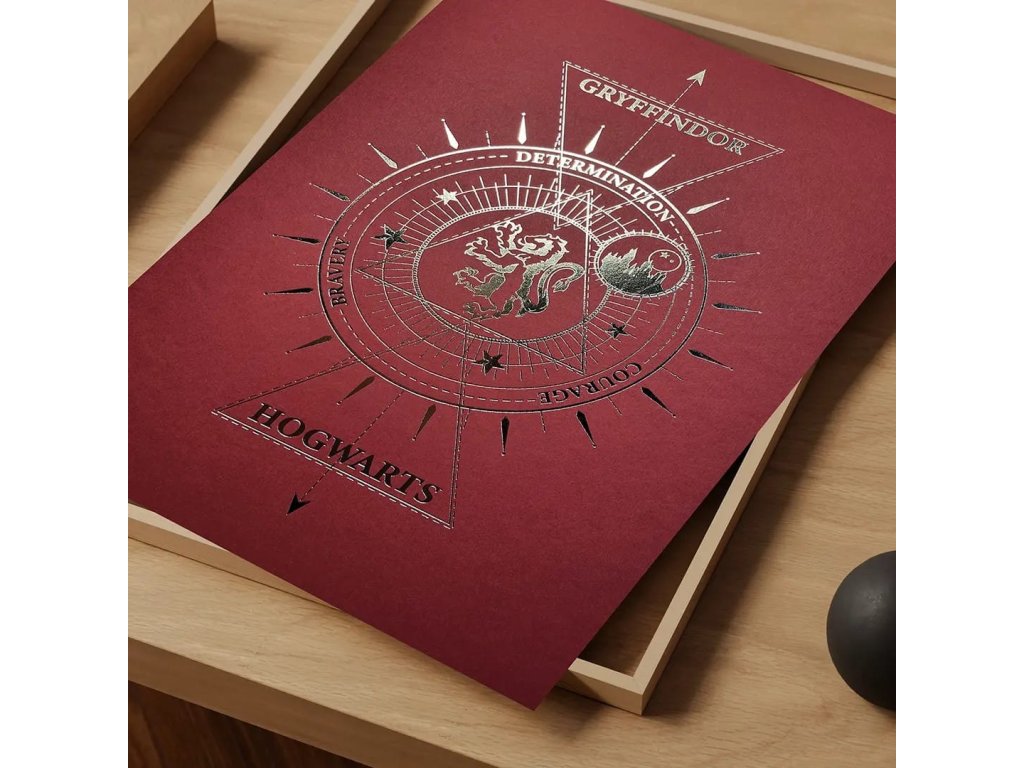 Pověs si doma nebo v pracovně jedinečný obraz s motivem Nebelvíru, jedné z kouzelnických kolejí na škole čar a kouzel v Harrym Potterovi. Krásný dárek pro opravdové milovníky magického světa J. K. Rowlingové. Obraz je dodáván v samonosném praktickém obalu Art&Frame, ve kterém si ho můžeš hned vystavit - bez potřeby rámu. Obal ochrání a také poslouží jako dárková krabička. Součástí balení je certifikát pravosti. Plakát pochází z dílny francouzské společnosti Artéonn z Provence a je ukázkou tiskařské práce, ve které se setkává řemeslo s tradicí. Během tisku se mezi papír a kovovou desku vloží film s hliníkovými pigmenty. Ty pak tlak a teplo přenesou do prohlubní, čímž se zajistí jedinečná barva a textura.Doplňkové parametry