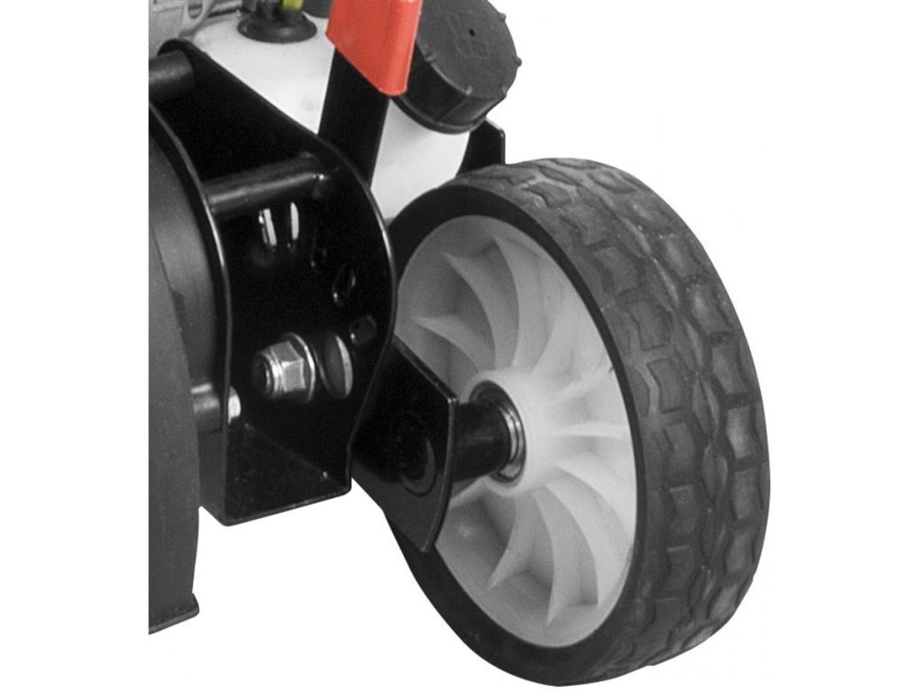 Konstrukce: podvozek z ocelového plechu, řezný nůž 224 x 50 mm (vč. ochranného krytu), pojezdová kola (3).
