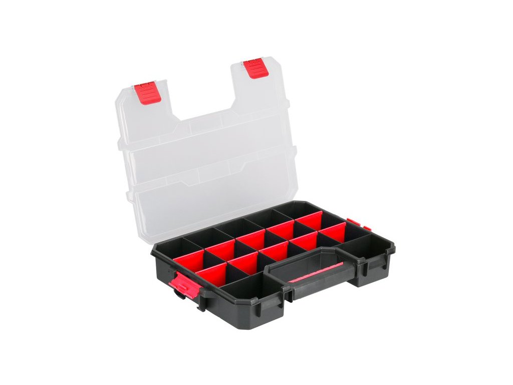 - transparentní víko, boční zámky pro sepnutí několika organizérů při stohování