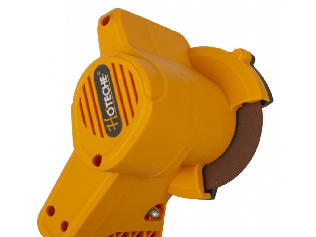 Bruska disponuje motorem o výkonu 85 W, který je ukryt v plastovém pouzdře a polohovatelným rychloupínacím mechanizmem s možností nastavení úhlu až do 35°.