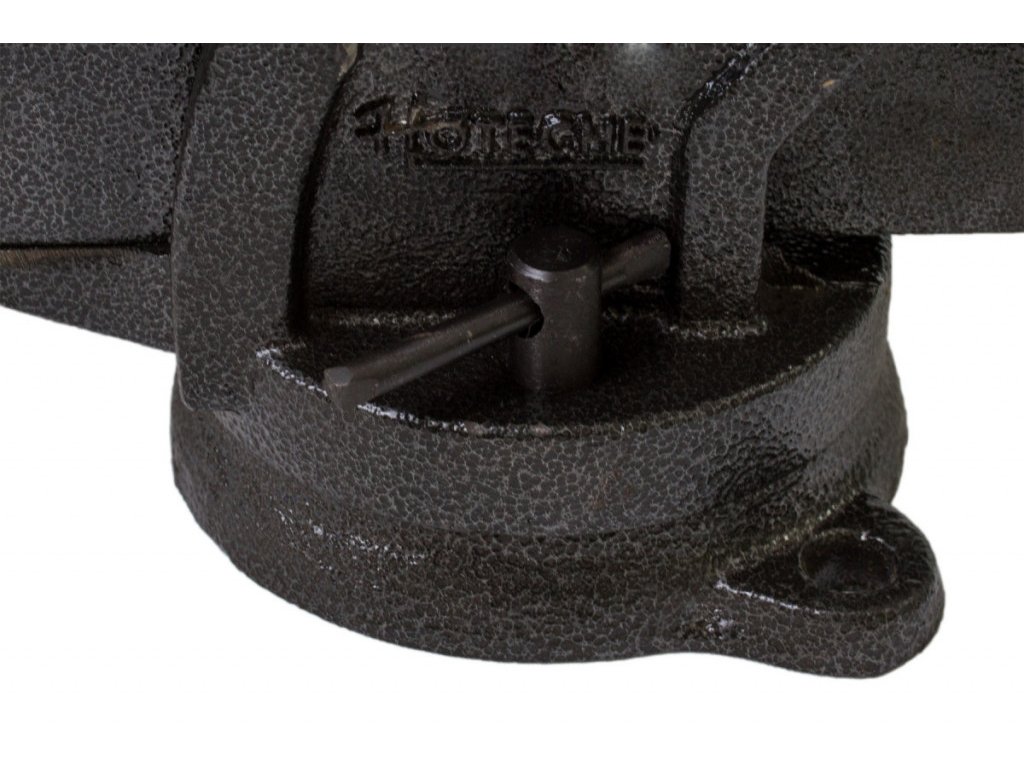 Svěrák disponuje pojistkou, která brání otočení při práci. Po uvolnění pojistky můžete svěrák otáčet podle potřeb.