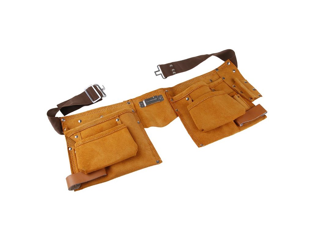 Nářaďový pás, PROFI - kvalitní silná kůže i zpracování - švy, 11 kapes, kůže / nylon, použití : k uložení nářadí a pomůcek, usnadňuje manipulaci a práci - snadné odkladání nářadí i opětovné uchopení, uložení materiálu - hřebíků, šroubů…, komfortní široký nastavitelný pás.Doplňkové parametry