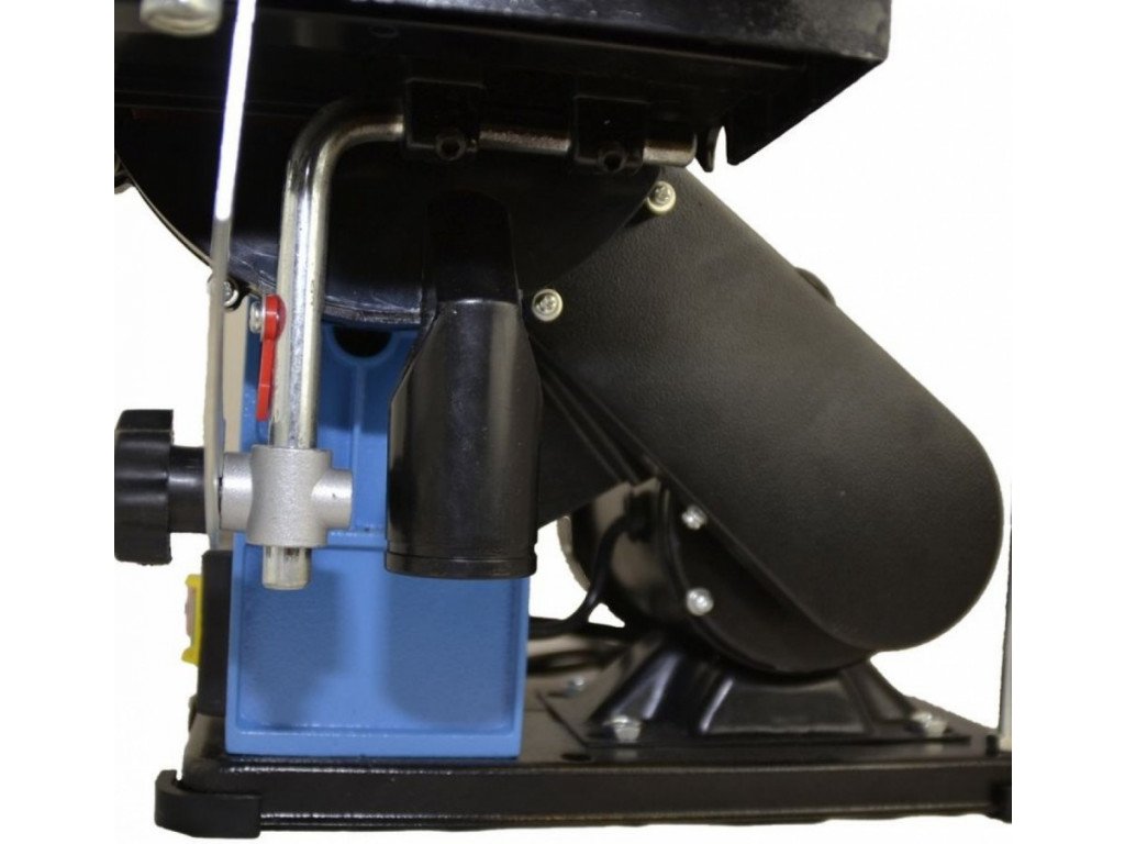 Konstrukce: stabilní kovová skříň, hliníkový pracovní stůl s úhlovou stupnicí (rozměry d x š: 190 x 125 mm), úhlový doraz, 2 přípojky odsávání, základová část se 4 otvory pro montáž napevno.