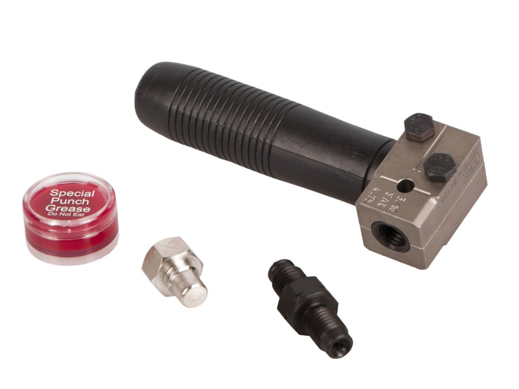 Pertlovačka pro snadné a přesné pertlování brzdových trubek přímo na vozidle. Pro oba druhy pertlů - DIN a SAE (E a F).