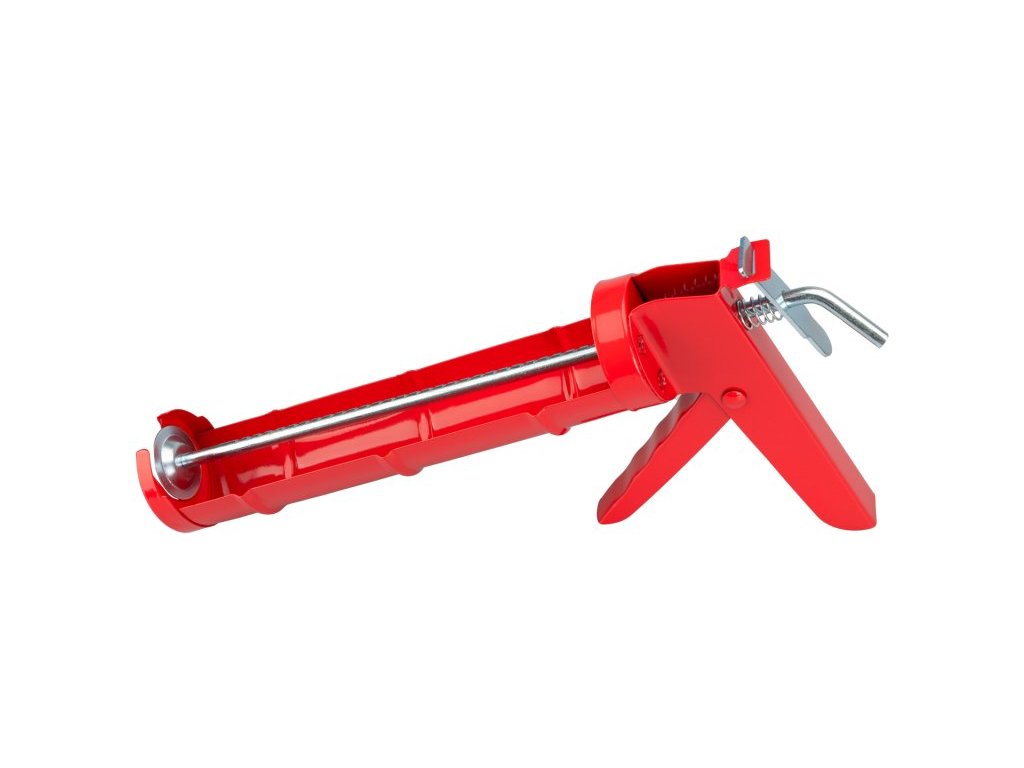 Vytlačovací pistole, plechová konstrukce, zoubkované táhlo pro lepší posun při vytlačování, použití : pro vytláčení tmelů a lepidel v kartuších 310 ml.Doplňkové parametry