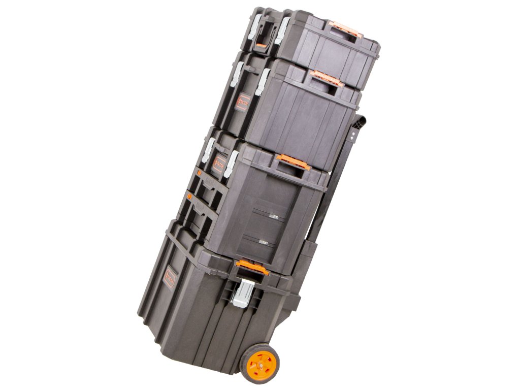 Tento plastový box na kolečkách značky Tactix je ideální pro efektivní skladování a přepravu nářadí.