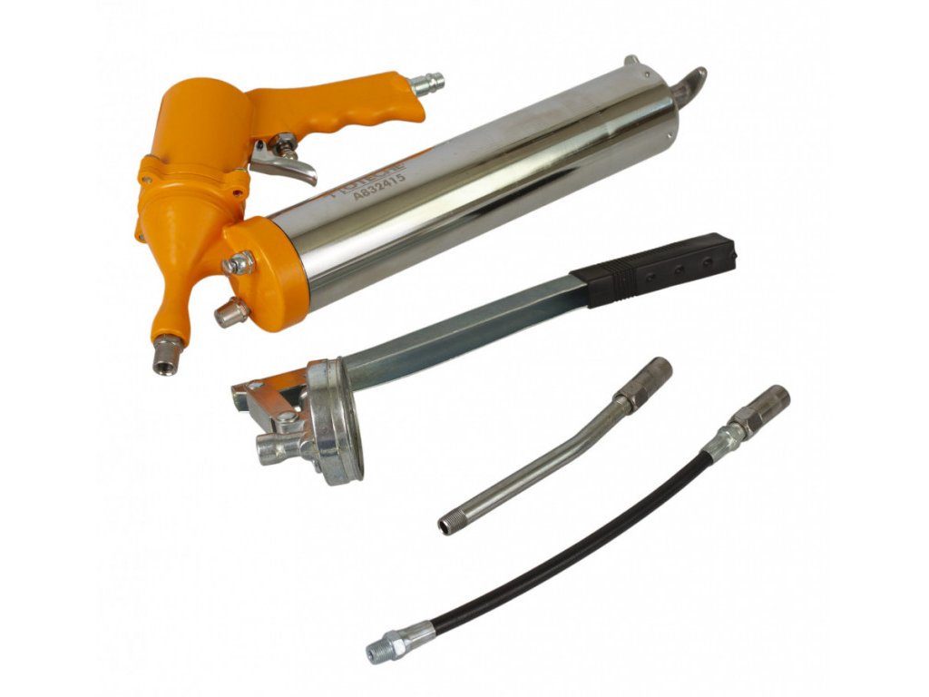 Tato sada obsahuje i ruční páku - tak lze přístroj používat i jako ruční pákový mazací lis.
