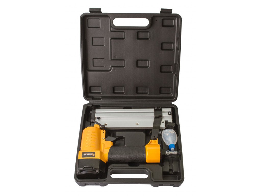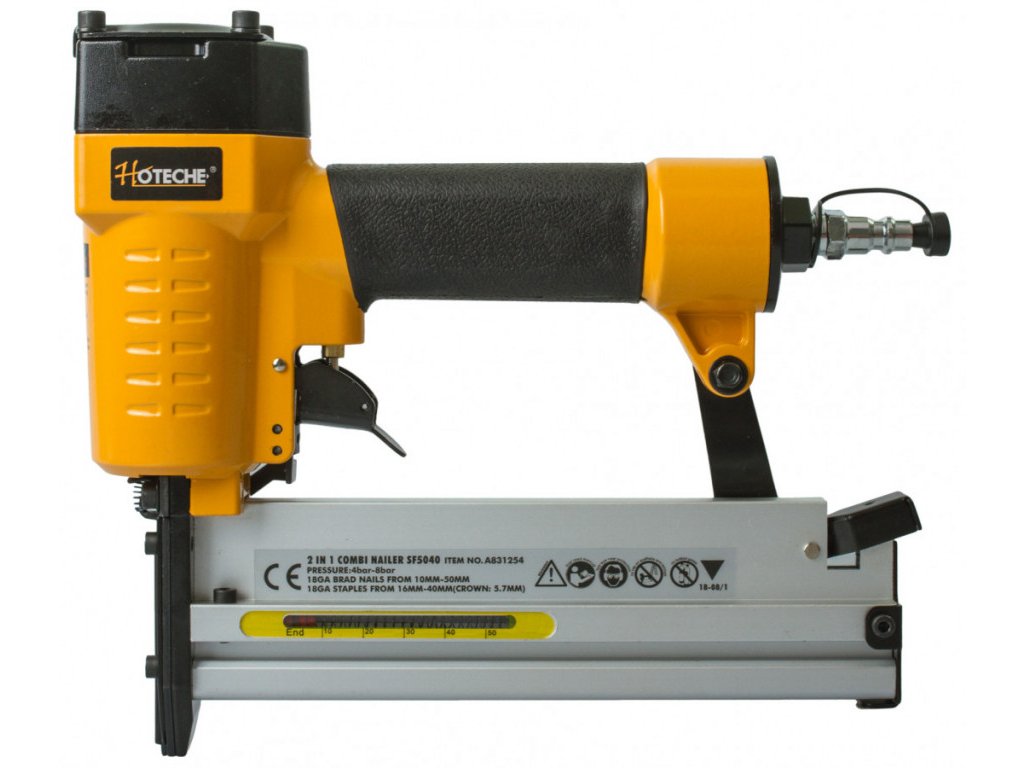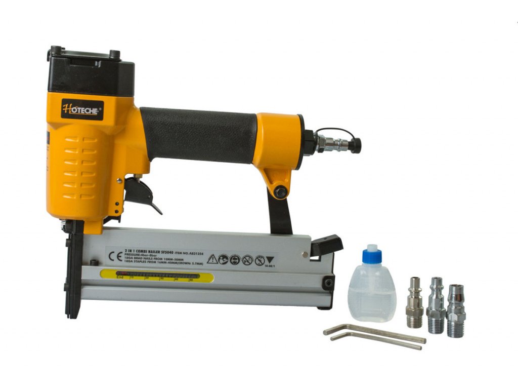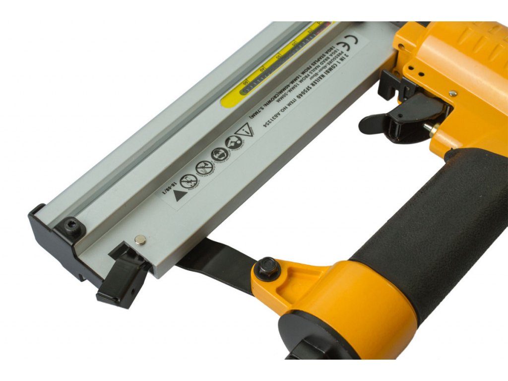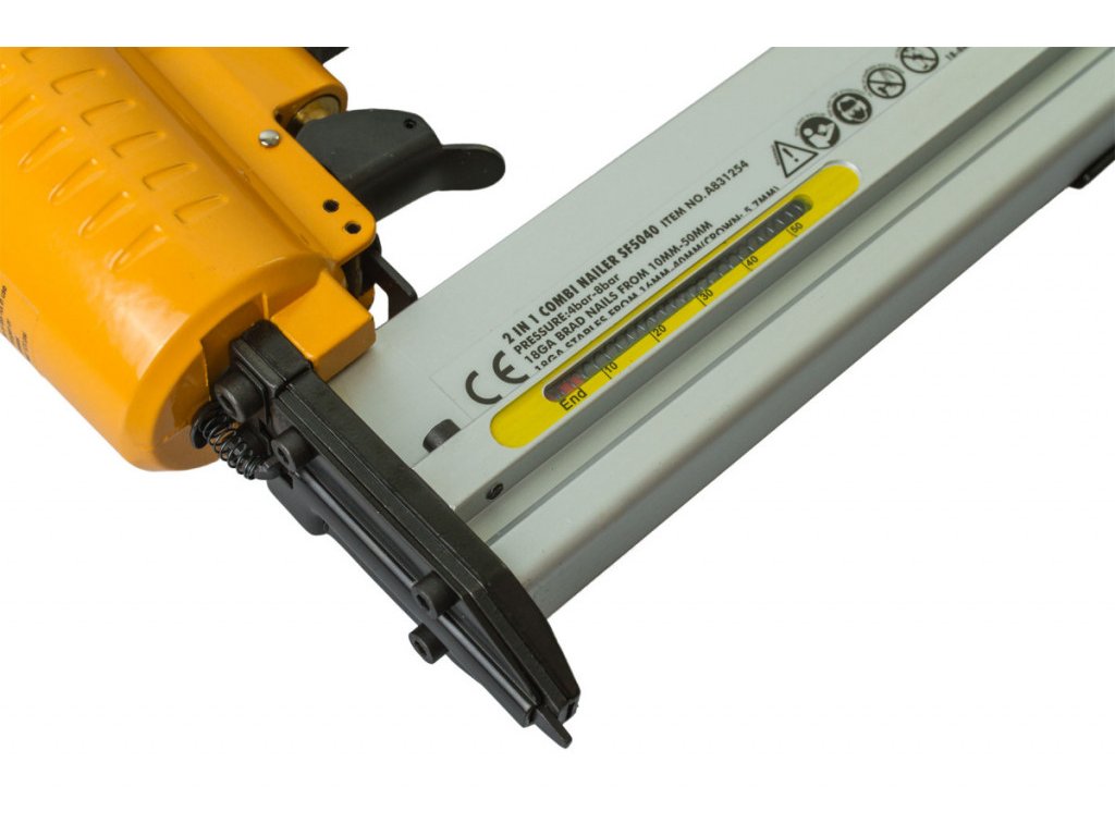 Výkonná pneumatická hřebíkovačka/sponkovačka poslouží převážně řemeslníkům a montážníkům k upevňování dřevěných lišt, panelů, obkladových desek, palubek, izolačních materiálů, krytin apod. Velikost hřebíků 10 - 50 mm. Velikost spon, délka 16 - 40 mm, šířka 5,8 mm.