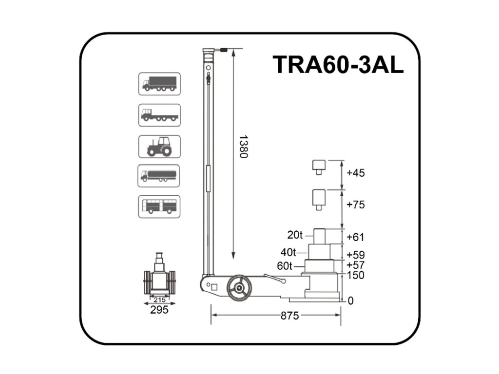 Pneumatický pojízdný zvedák, 60t/40t/20t - TRA60-3AL